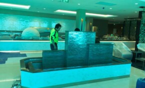 Express Tiling proudly completed this high end project which consisted of over 1300m2 lightweight screeding and obtained 1,000m2 large format porcelain tiles, this project contained a 600 x 1200mm floor tiling and included 300 x 600mm amenity wall and floor tiling, and marble mosaic. Reception area covered 1000 x 1000mm marble that was comprised of 18-carats of gold mosaics insert and inbetween dark colour marble.
