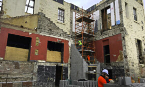 Express Tiling proudly completed this pub fitout at Richmond with the team at Next Group. Tiling consisted of 16 different floor and wall tiles from ceramics to terrazzo and brick paving to all bathrooms tiling. The main feature tiling is on the ground floor columns and walls which consists of 2 different colours of 230 x 110 x 25mm glazed and matte brick tiles in a special brick bond pattern.