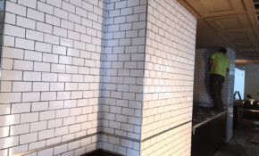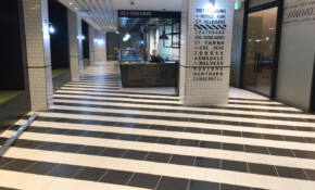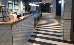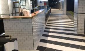 Tiling works included tenancy floors, front of house, kitchen floor with Epoxy Grout & extensive wall tiling.